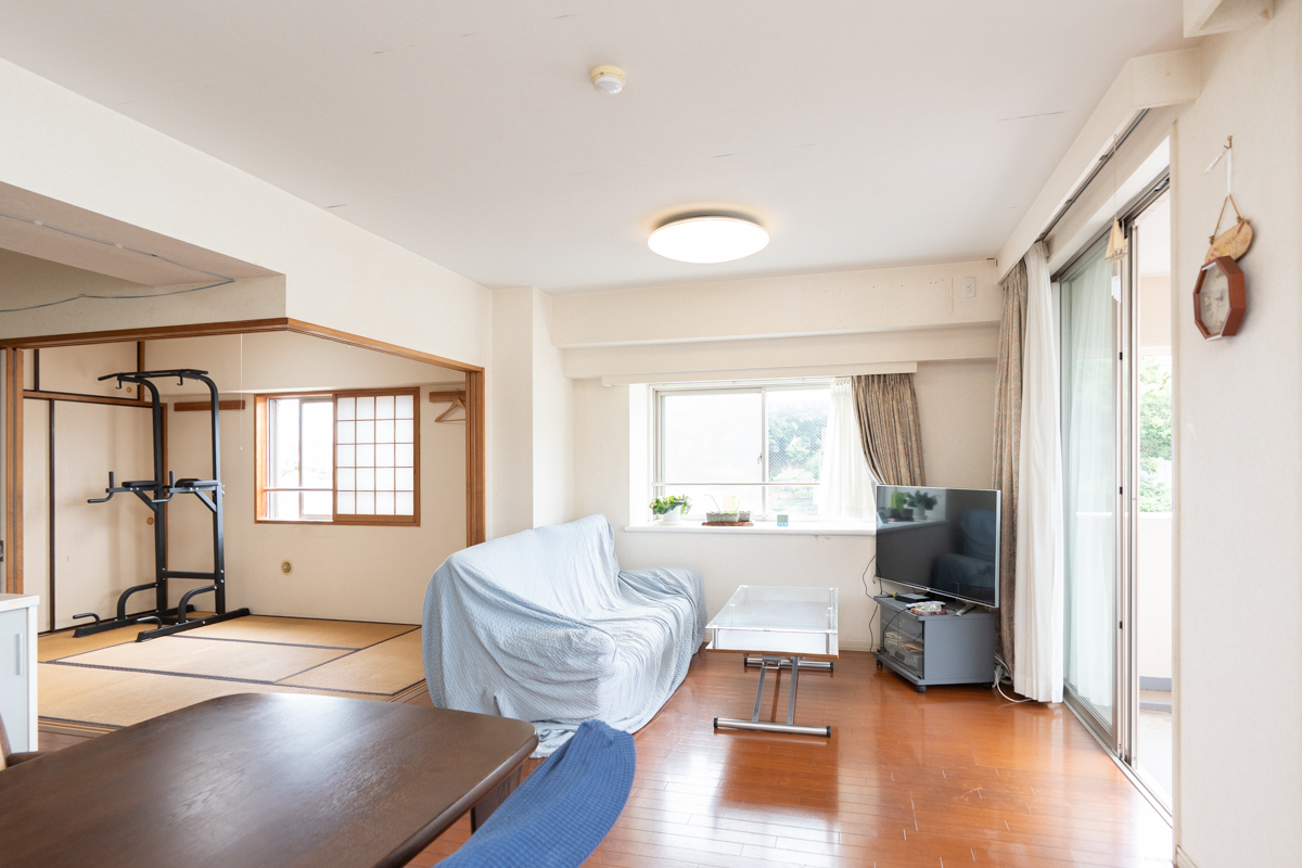 角部屋で窓が多く、優しい光が部屋全体に広がり約15.6帖のLDKは広々としていて、隣の和室とあわせることで開放感抜群のお部屋になります。