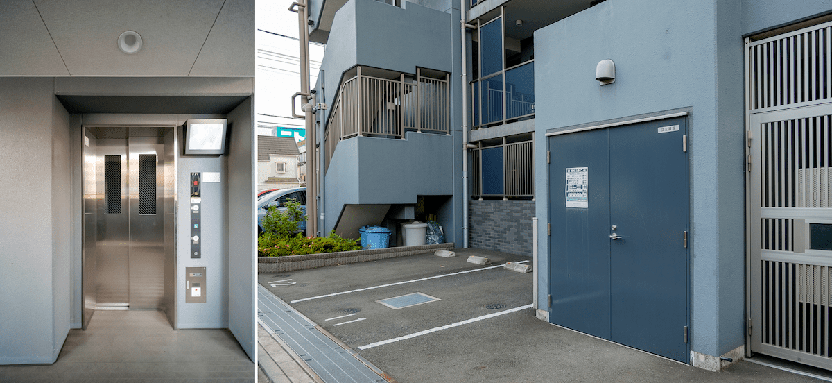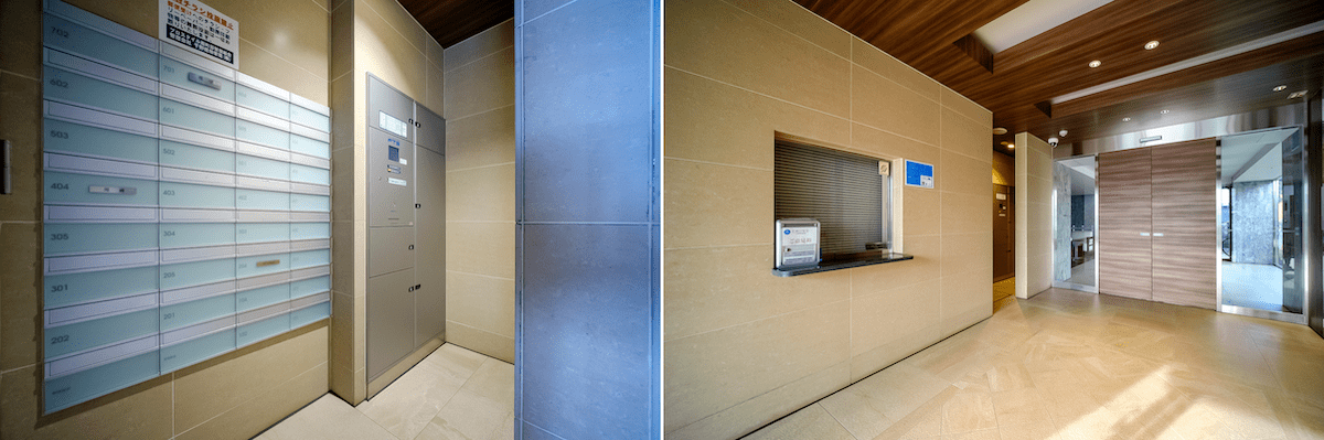 メールボックス・宅配ボックス(左)と管理人室(右)