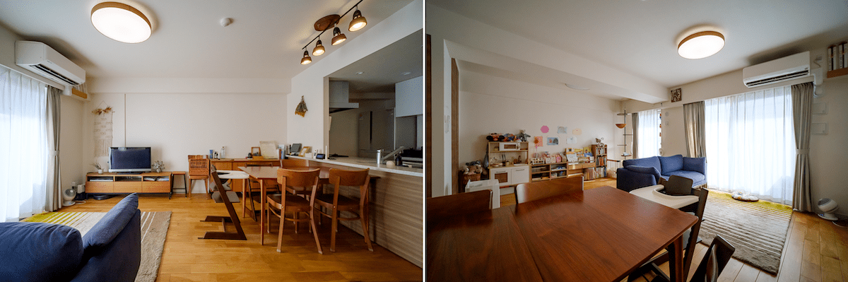 リビングの床が無垢材になっているのですが、これが想像以上に快適で、とても気に入っています! 裸足で歩いたりペタッと寝そべったりして、子どもと一緒に木の感触を楽しんでいます。