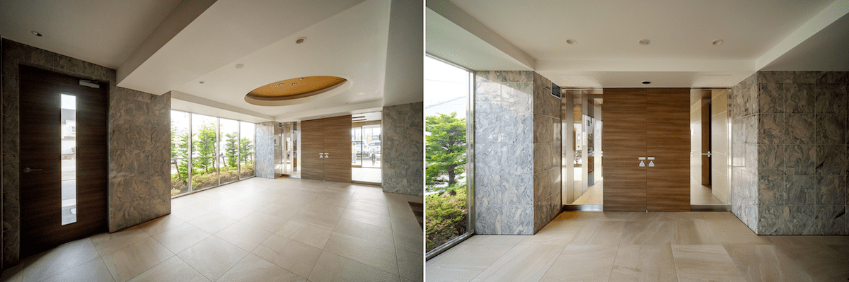 エントランスは広々としていて、ゆったりとくつろげそうなソファが置かれている