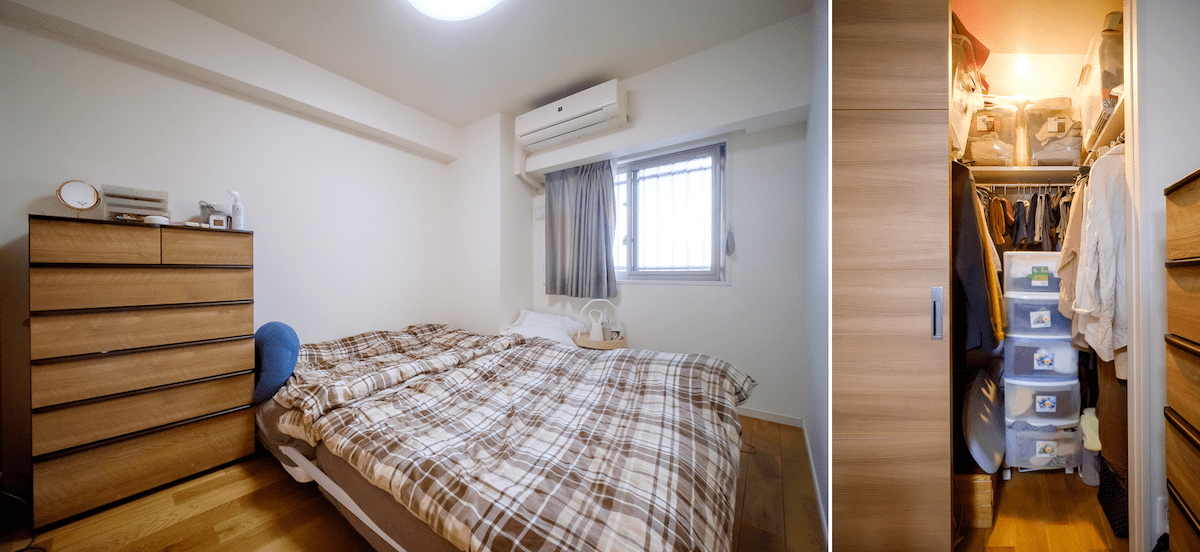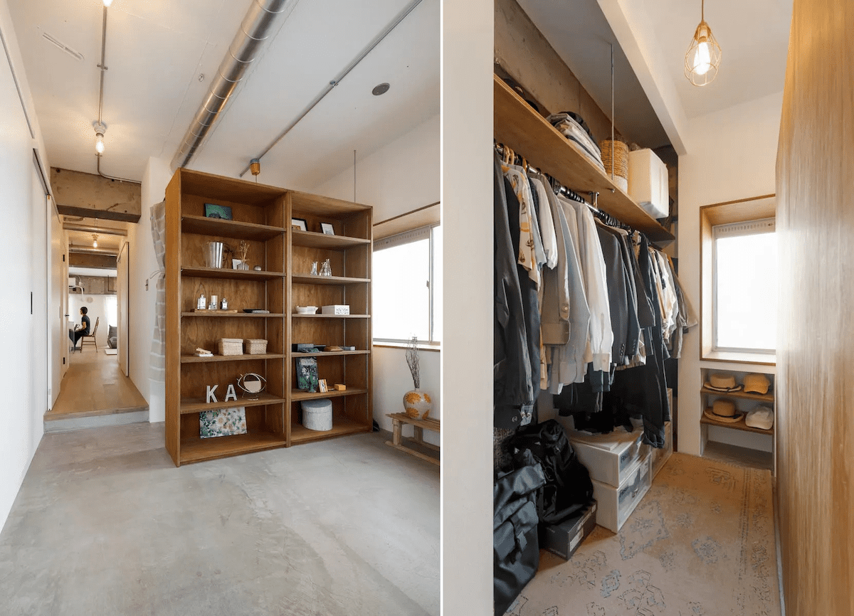 玄関土間に設けたWICは、帰宅後すぐに上着をかけられてとっても便利。大きな飾り棚を置けば目隠しにもなります。