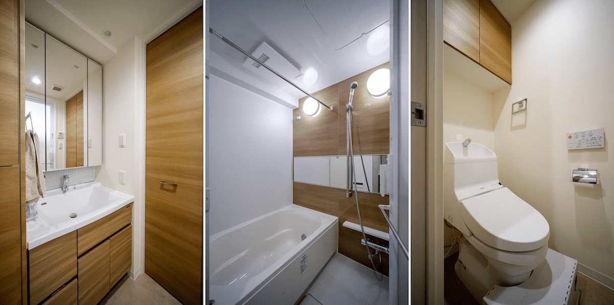 水まわりもきちんとお手入れされていて、まだまだ十分に新しい。洗面の奥の扉の中は洗濯機置き場となっている
