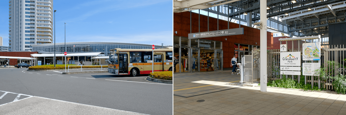 南町田グランベリーパーク駅。南口はグランベリーパーク直結、北口はバス乗り場となっている