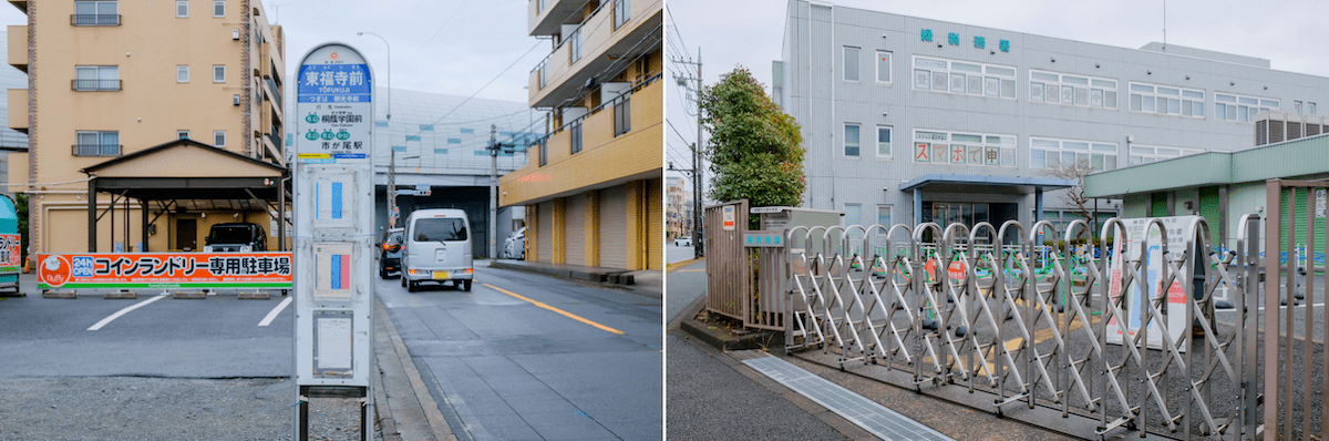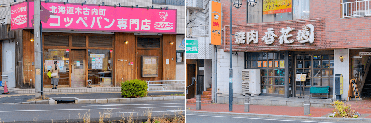 「コッペんどっと 市が尾店」(左)と「焼肉ハウス香花園」(右)は市が尾駅東口から南に徒歩3分