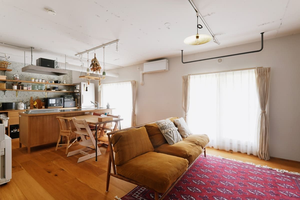 南向きのLDKはキッチンまで一直線にベランダに面している。冬でも日中はエアコンがいらないほど暖かいそう