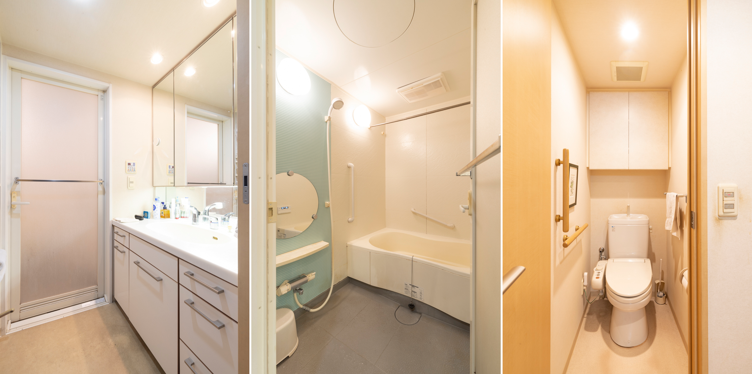 きれいに維持されている水まわり。大きな洗面台が印象的