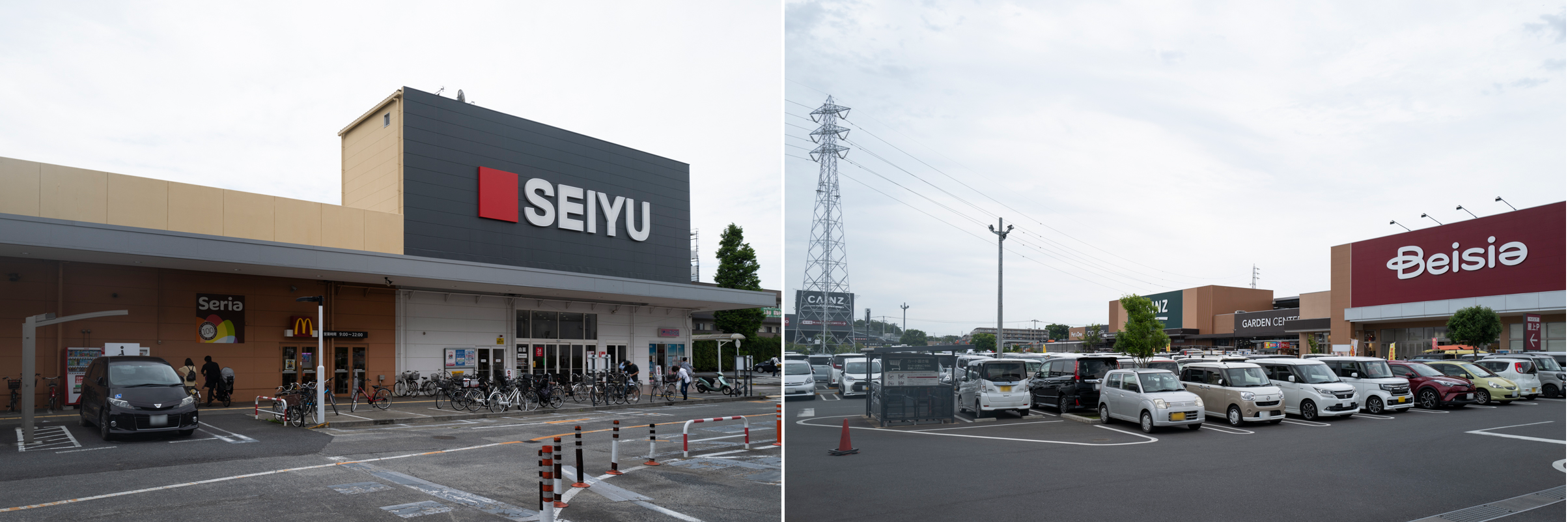 車で6分のところにある西友新座店。車で10分のところにあるカインズ新座店には同じ敷地内にスーパーのベイシアやスターバックスコーヒーもある