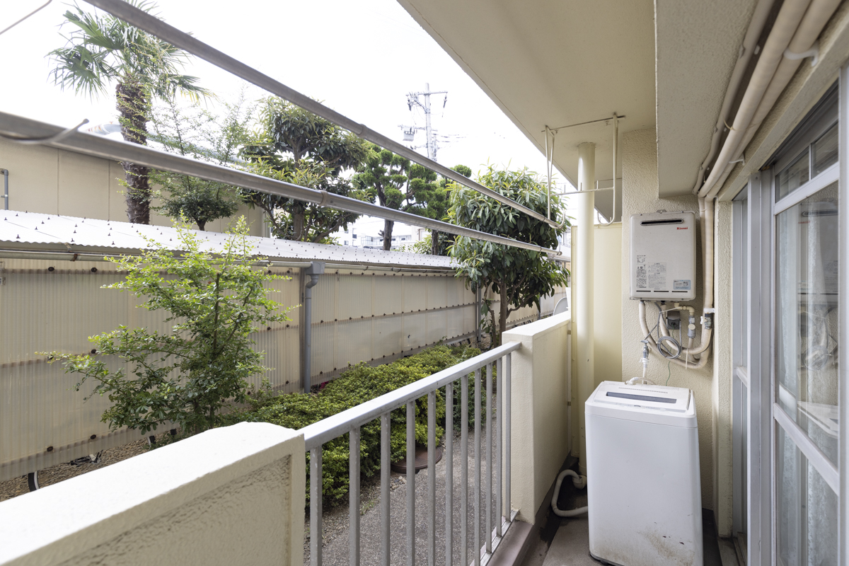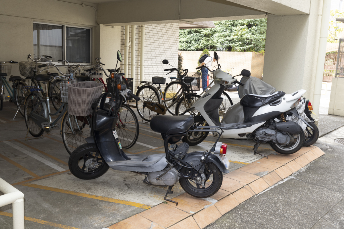 バルコニーの目の前が駐輪場だが、壁越しなので住人と顔を合わせるようなことはない