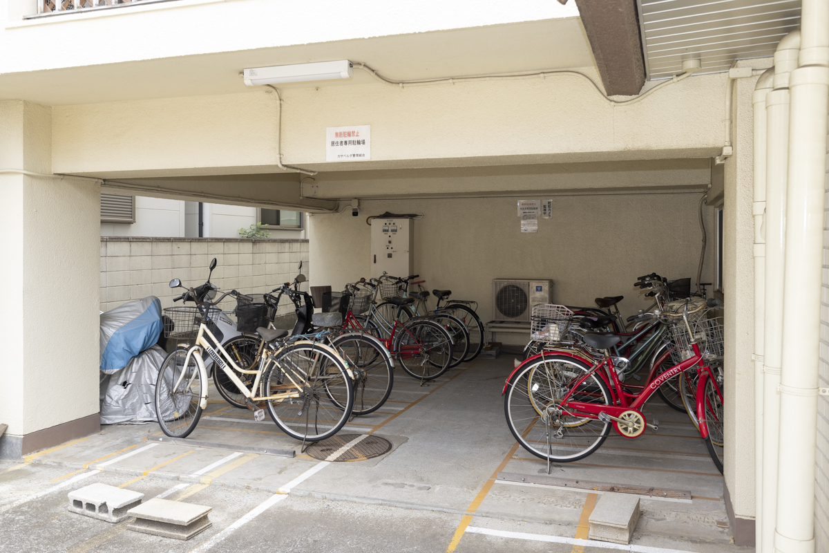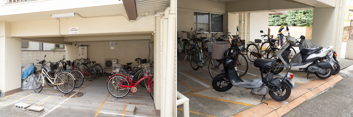 駐輪場はコンビニ側と建物側の2箇所。バイク置き場もある