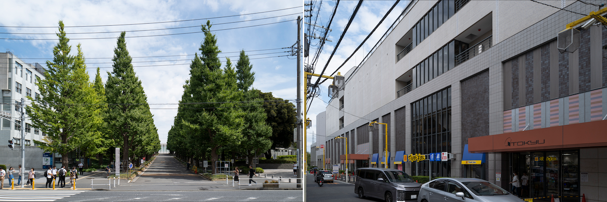 駅の東口には慶応大学の日吉キャンパス。駅ビルには複合施設、日吉東急アベニューがある