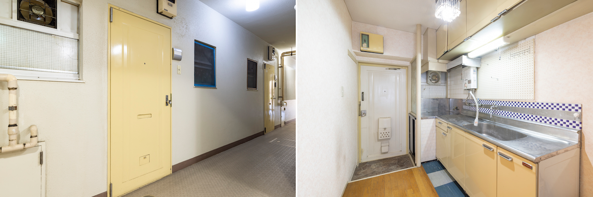 レトロで雰囲気のある玄関ドアだが、近々大規模修繕によって新しいものに変わる予定