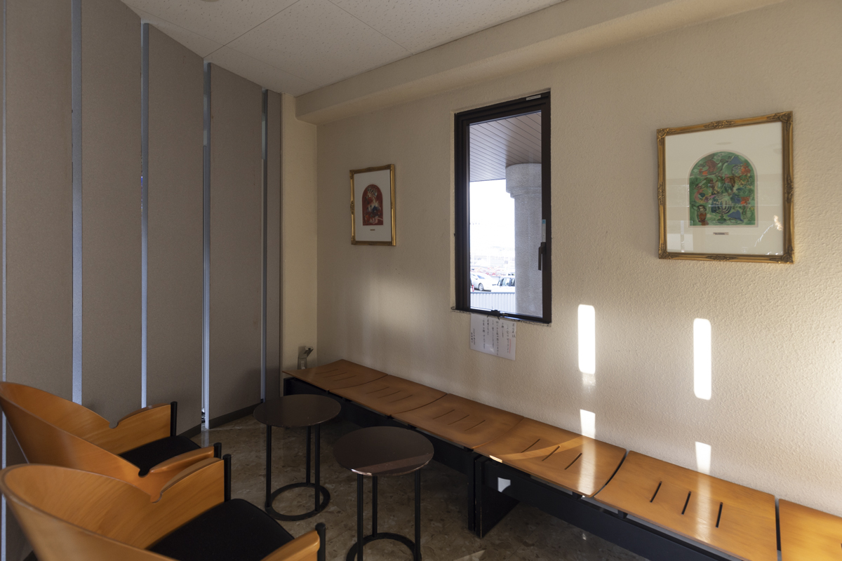 休憩場所は8人くらいが同時に使えるくらいの広さ。差し込む光が心地よい