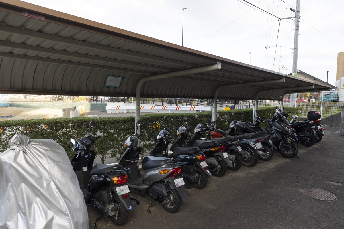 バイク置き場も広い。近所にバイク屋も多いので、バイク好きにも適したマンション