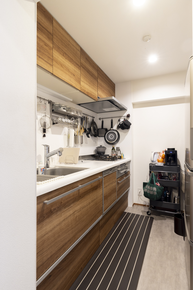 8年前にフルリノベーション済み。内装はモダンで消耗も最小限。玄関土間やウォークインクロゼットが設けられているなど、一般的なマンションではあまり見られない間取りになっているのも特徴です。