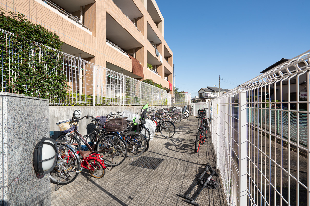 駐車場は屋根のある駐車場と、建物に囲まれた場所に機械式立体駐車場が設けられています。
