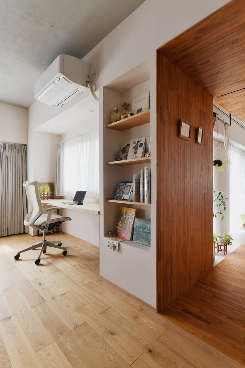 フリースペースとしても、書斎としても使えるLDKのワークスペースです。子どもの勉強スペースにすれば、家族で空間を共有しながら別のことができ、様子を見ながら家事をすることも可能。家族の顔をいつも見ながら生活することができる間取りになっています。