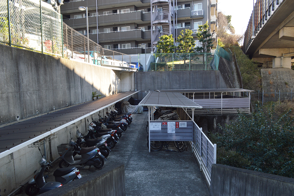 グラン・コート六ツ川ガーデンの駐輪場広々とした駐輪場。バイクも停められる