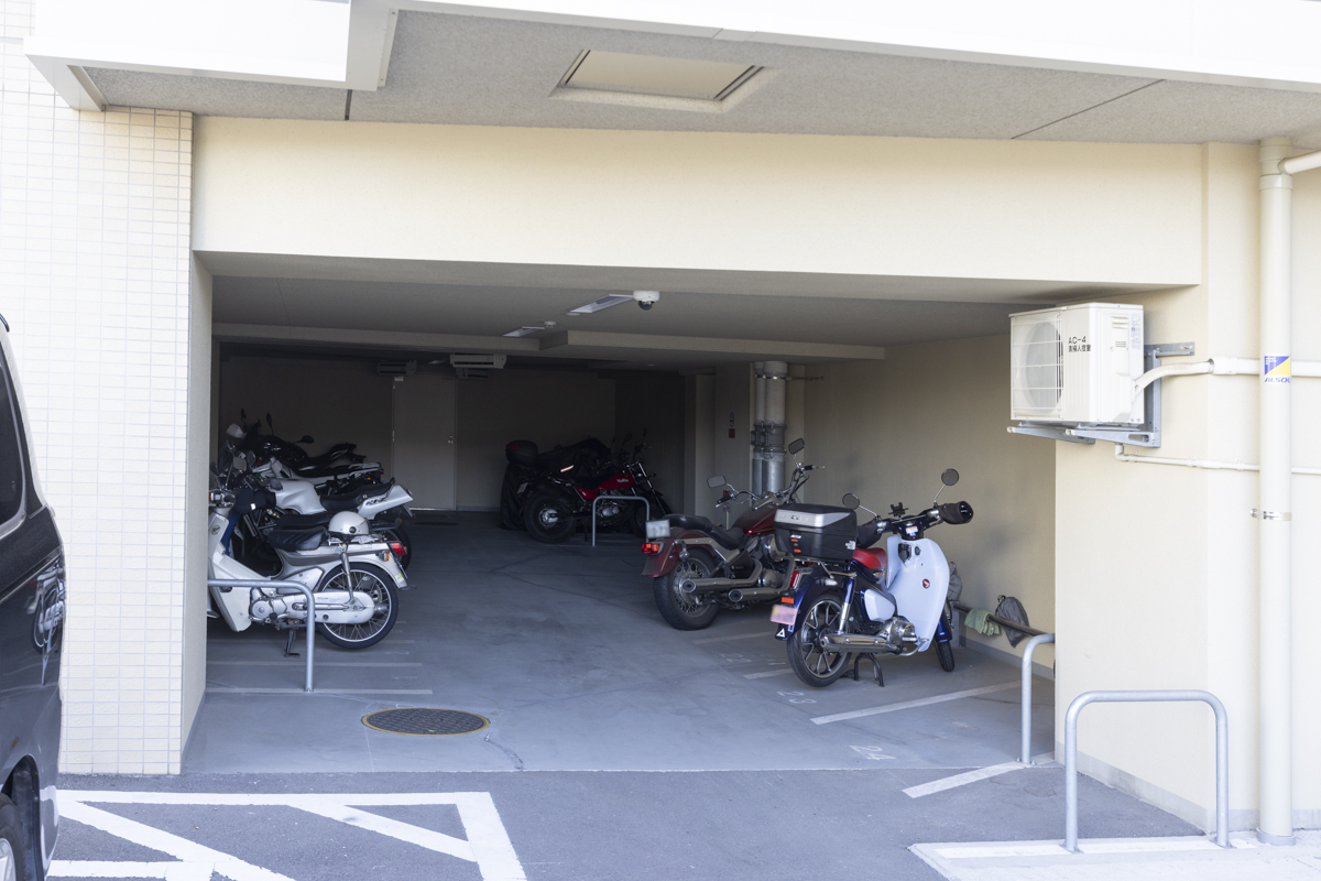 バイク置き場は半屋内で、雨風が凌げて傷みにくい