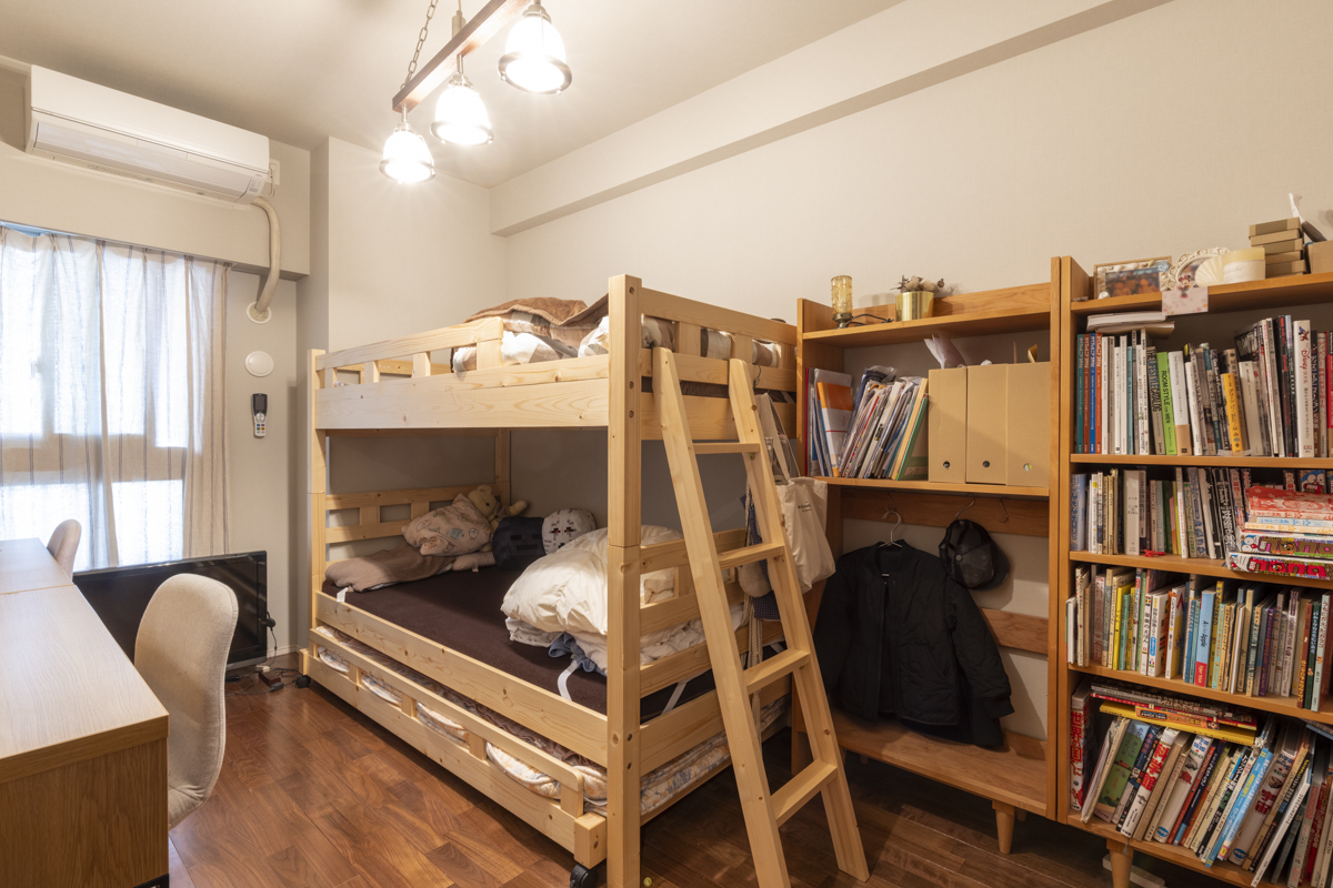 玄関側の一番大きい7帖の部屋はウォークインクロゼット(WIC)付きで収納力もあり、子ども2人の部屋にしても充分な広さ