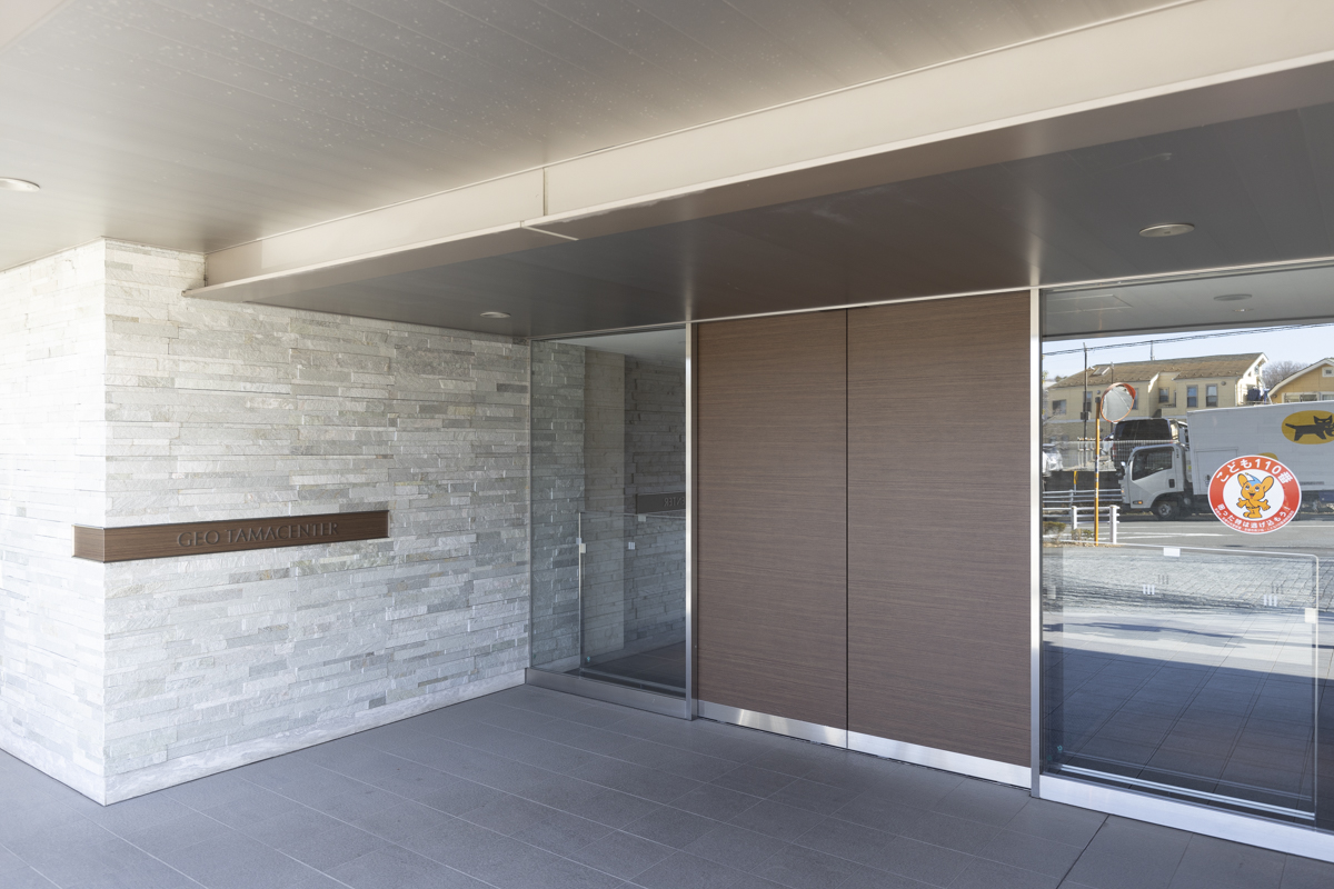 メインのエントランス。シンプルで清潔感のあるデザイン