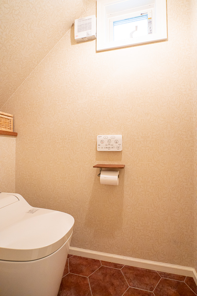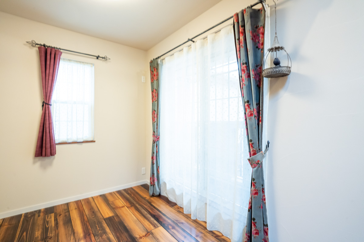 壁と天井は漆喰に似た素材で、天井のみ刷毛めを残した感じに仕上げました。真っ白ではない、ベージュがかった温かみのある色です。床はボルドーパインという自然素材を選びました。厚さが28mmあるので足元が冷えない気がします。窓も二重サッシなので暖かく、室内も静かですね。