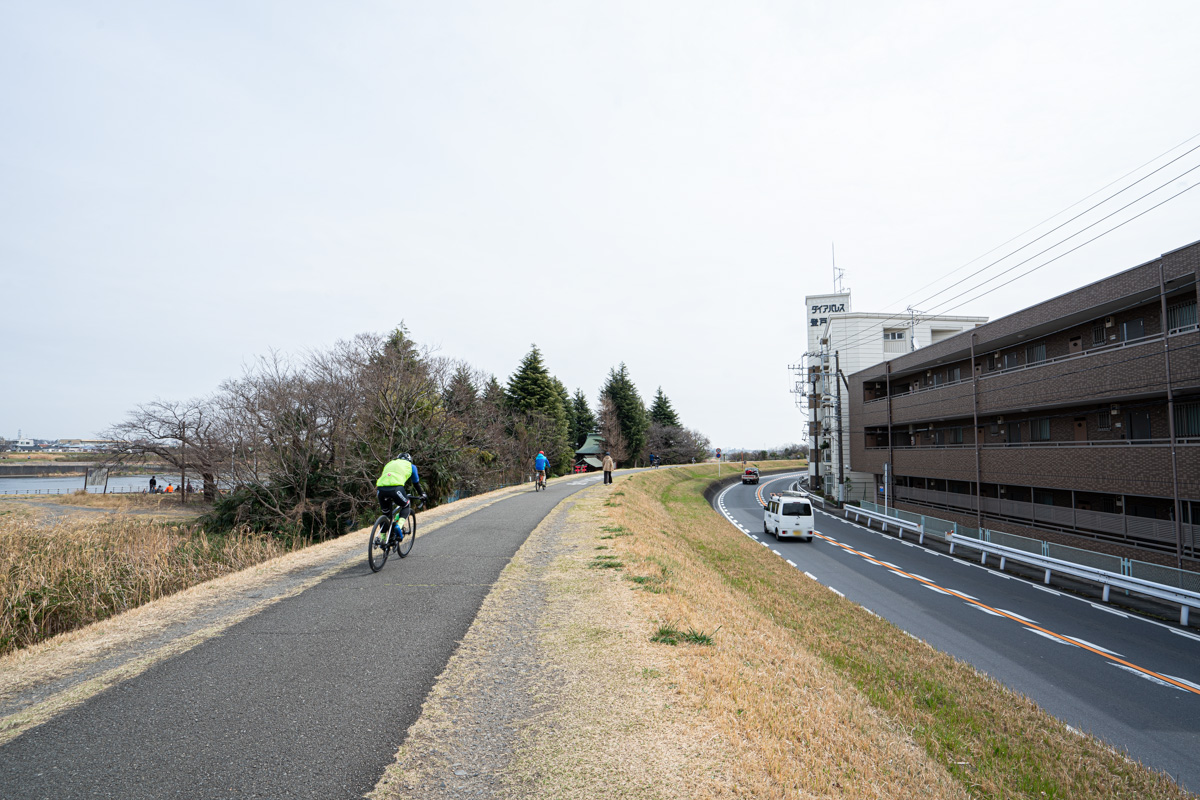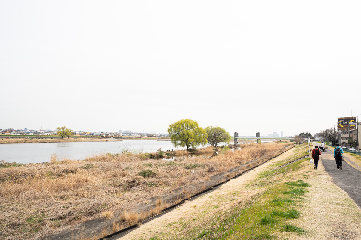 ジョギングをする人やロードバイカーが絶えない多摩川河川敷
