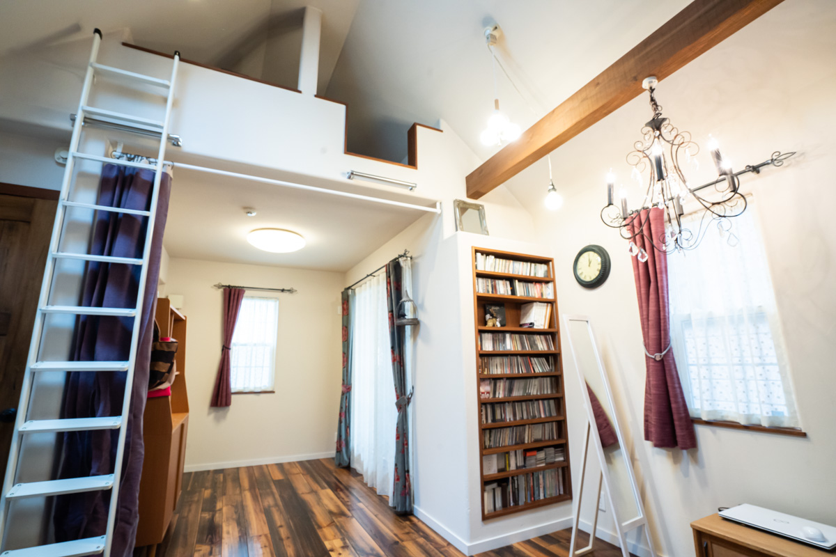 3階建てにする代わりに、収納目的でロフトをつけました。ごちゃつくインターネットの配線もロフトに設置したので、部屋がすっきり見えます。