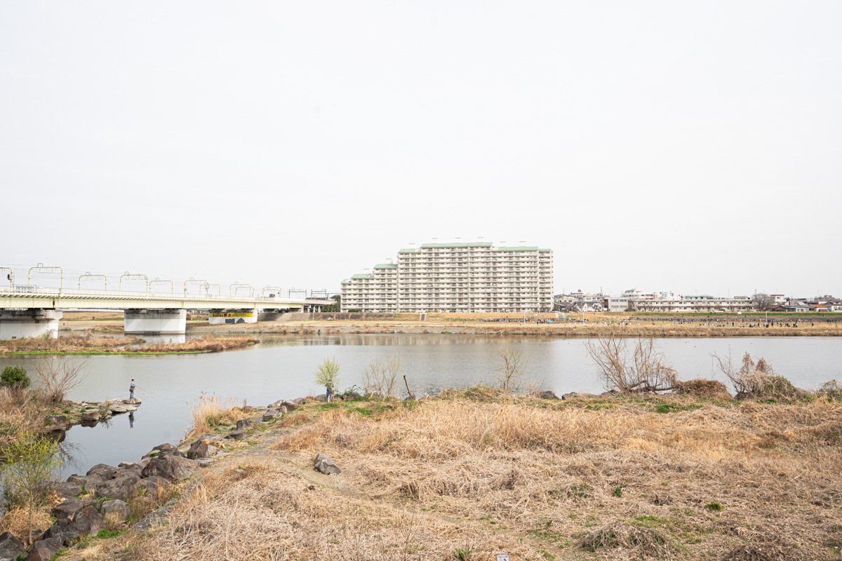 歴史ある登戸の渡し付近では釣り糸を垂らす人も