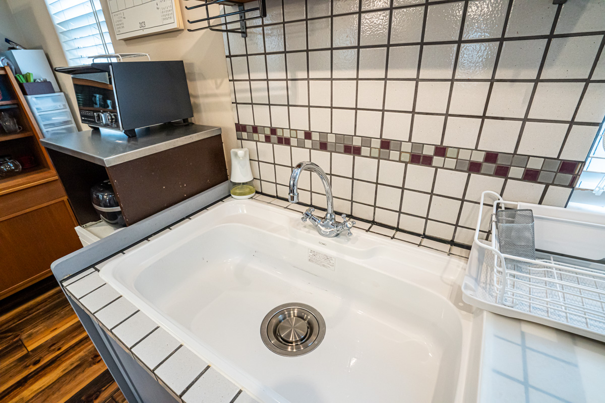 キッチンはお気に入りです。部屋を広く見せるためにカウンターキッチンにしませんでした。L字型は使い勝手も良いですよ。シンクはステンレスに白いコーティングを施したホーロー風で、丈夫できれいです。