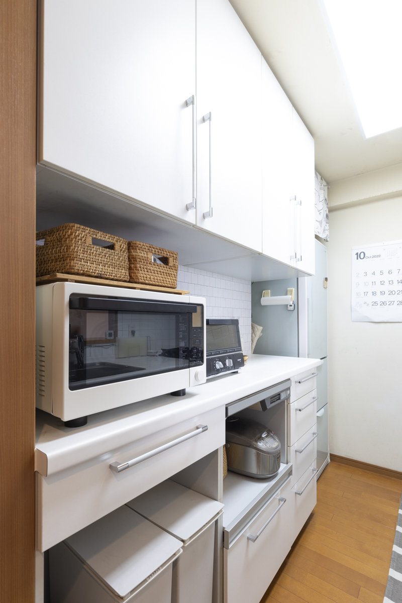 向かって左側の収納は売主さんが入居時に作ってもらった造作家具
