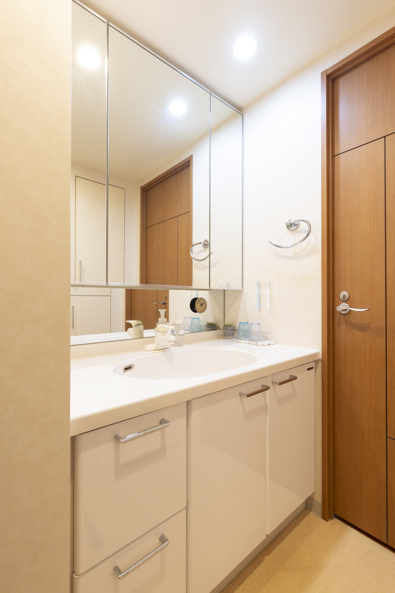 洗面所が開き扉で、トイレとほぼ真向かいにあるのも不便でした。洗濯物を持っているのにスムーズに出入りできなかったり、トイレを使う人と鉢合わせして動けなくなったり。引き戸になっているととても便利だなと思っていたので、リノベーションをするならその辺りも検討すると良いかと思います。