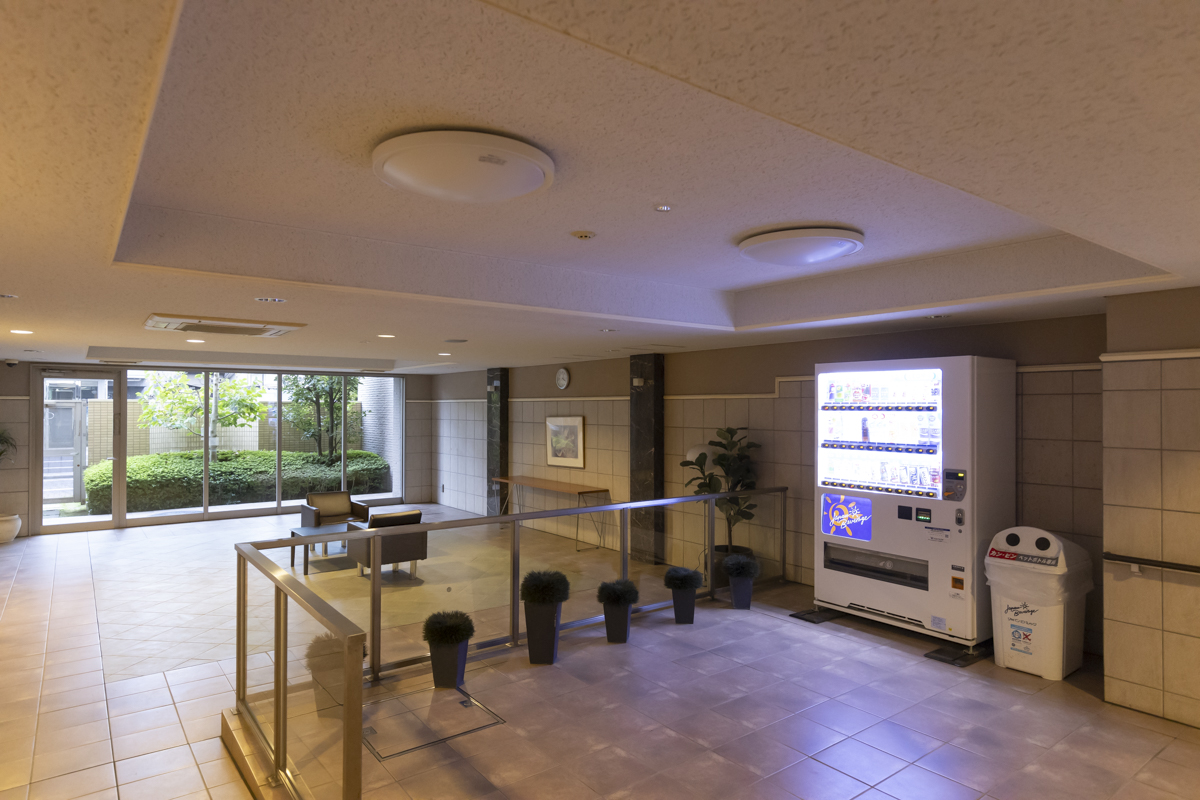 マンション自体の管理もとても行き届いている様子で、ゴミ一つなく非常にきれい。屋外には駐車場や駐輪場以外にちょっとした遊具や、エントランスには広々とした共有スペースや自動販売機も設置されていて、設備の良さも感じることができました。