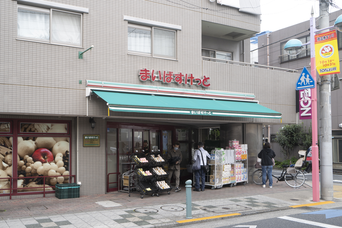正直、日用品の買い物で駅前まで行くことはあまりないです。ガード下にあるヤマイチくらいで、基本的に自転車で行ける範囲の2、3店舗を使い分けています。あと、マンションから歩いて3分くらいのところにまいばすけっともあるので、急に必要なものができた時に利用したりしますね。