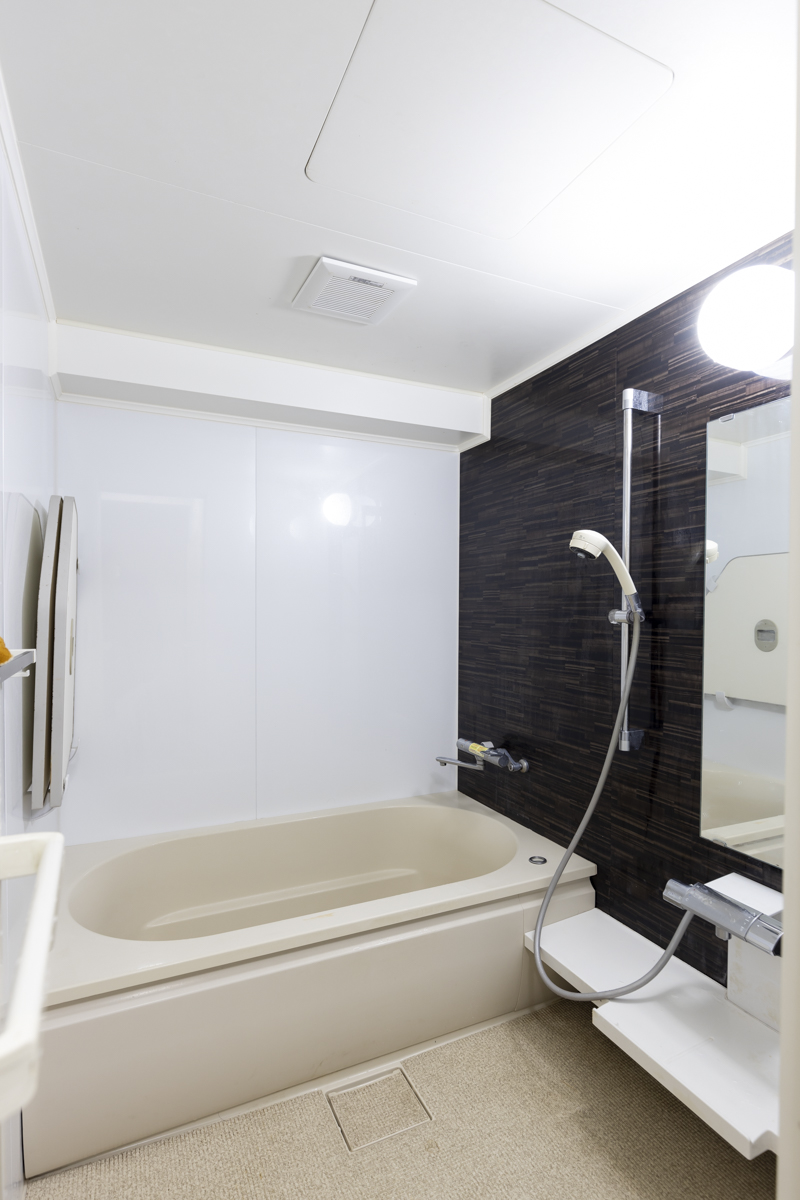 (右)広くてモダンな佇まいの浴室