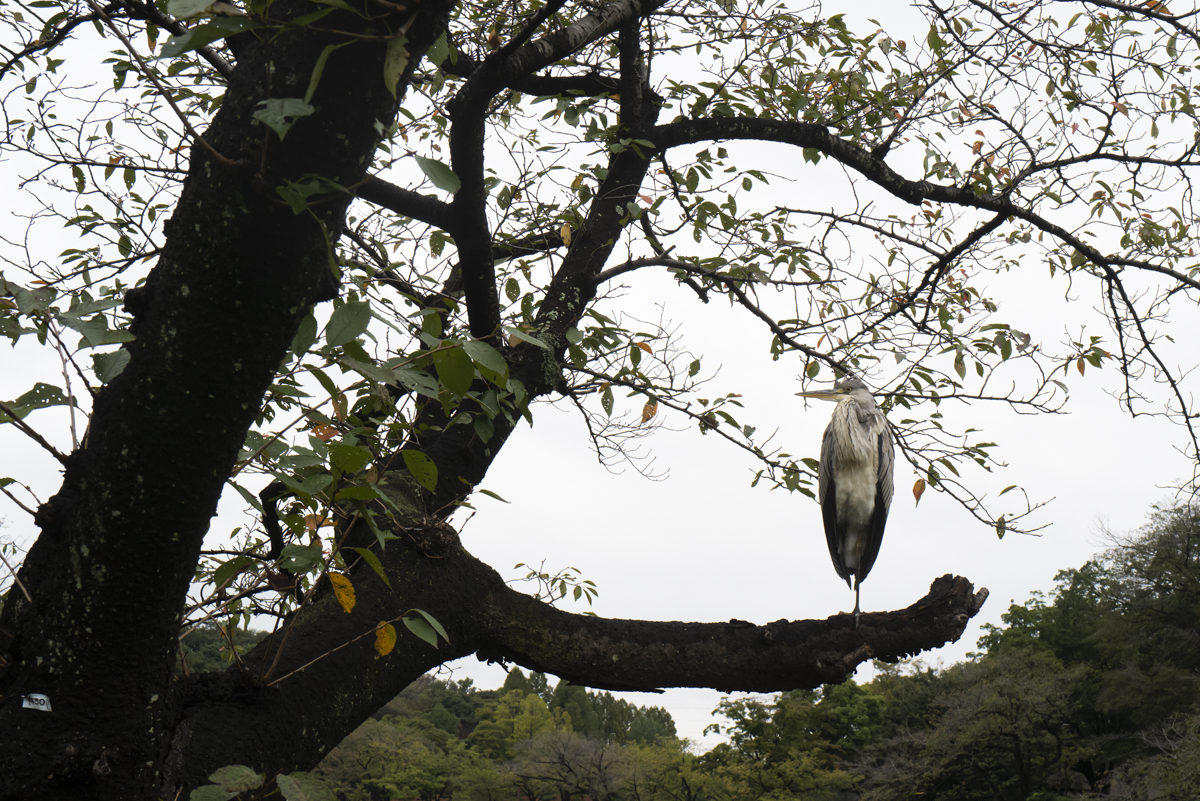 自然豊かな三ツ池公園ではこんなアオサギに出会えたりも。まだ幼鳥であったが大型のサギなので見ごたえ充分