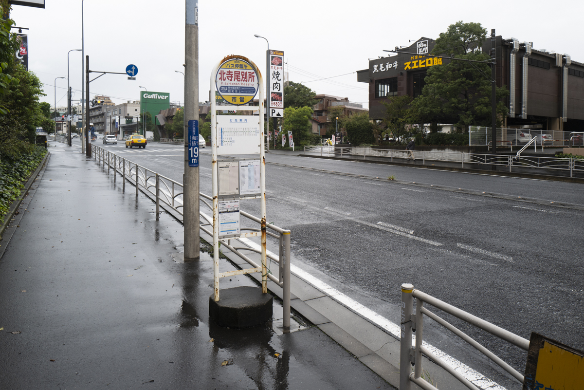 マンションから徒歩3分、大通り沿いに設置されているバス停、北寺尾別所