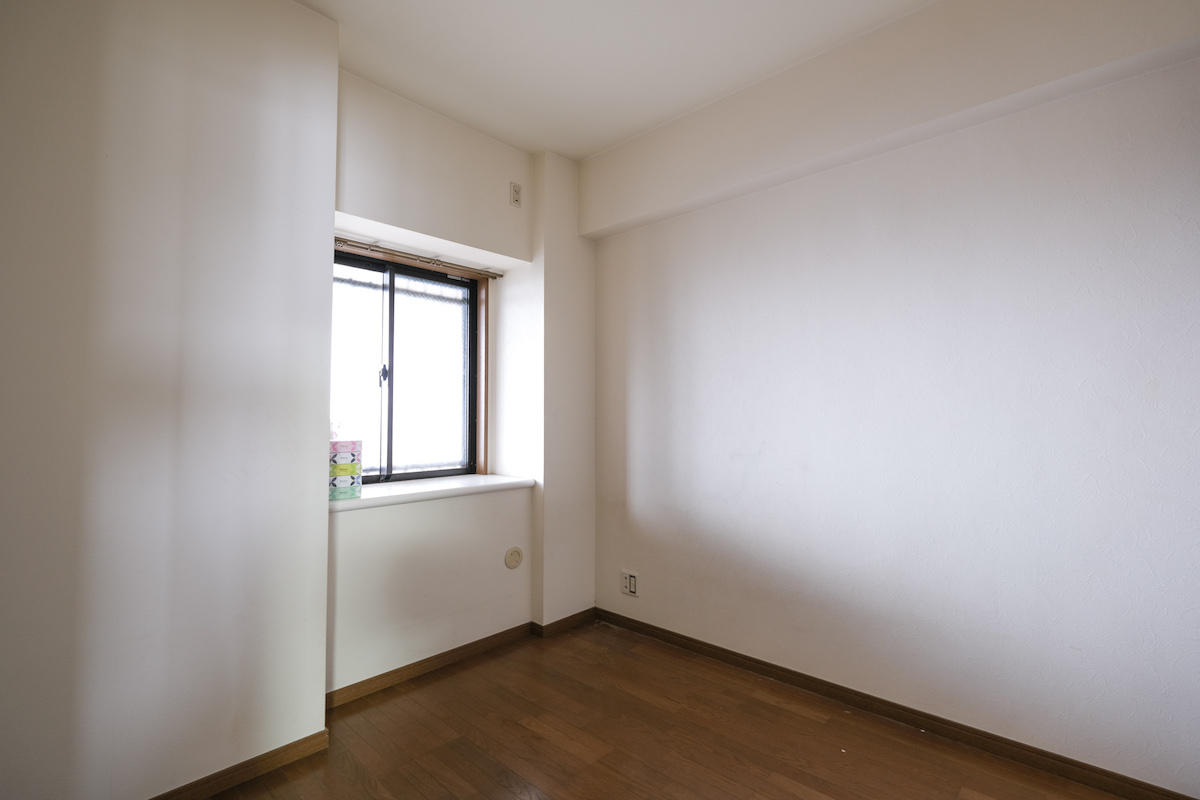 リビングに隣り合う洋室は出窓になっている。リノベーションするなら、窓の高さに合わせて、ベンチになる造作収納をつくるのもよさそう