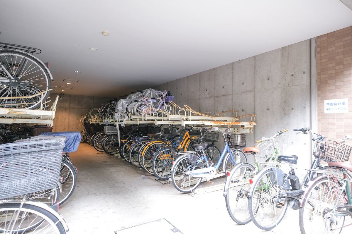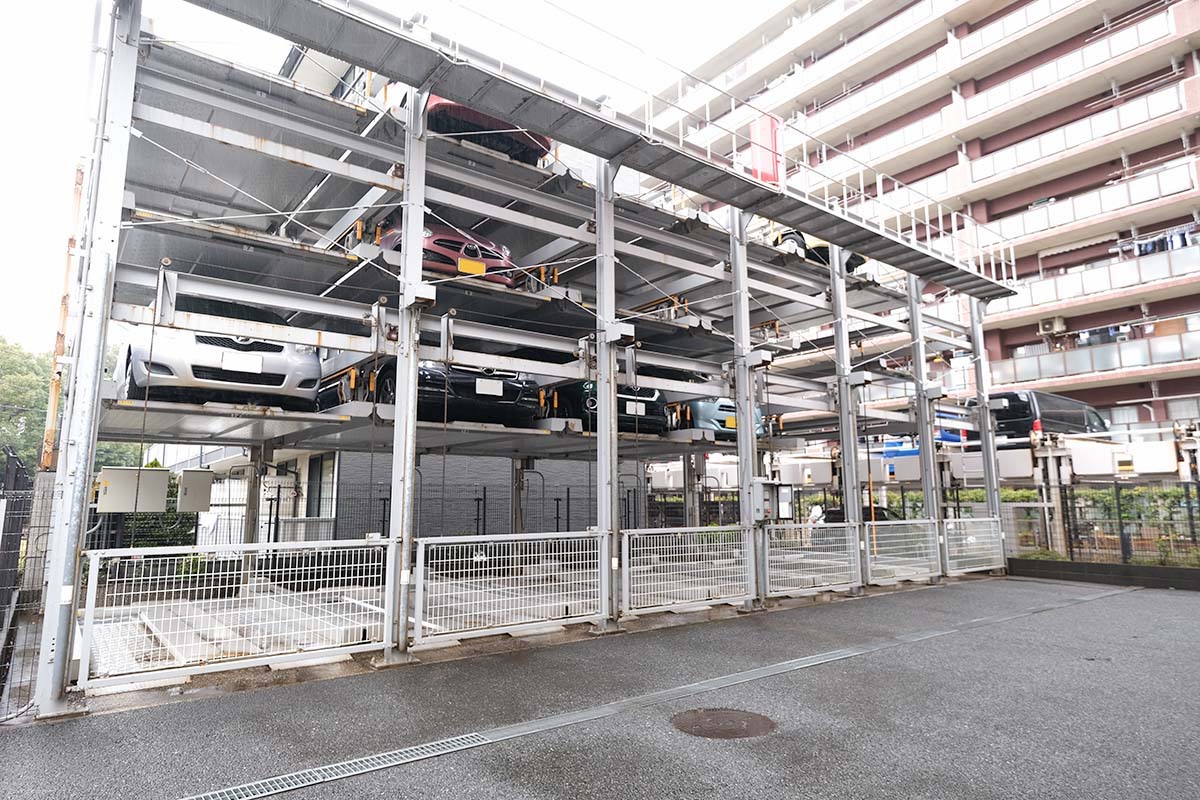 敷地内の機械式駐車場。マンションエントランスの目の前にあるため、荷物が多い時の移動に便利