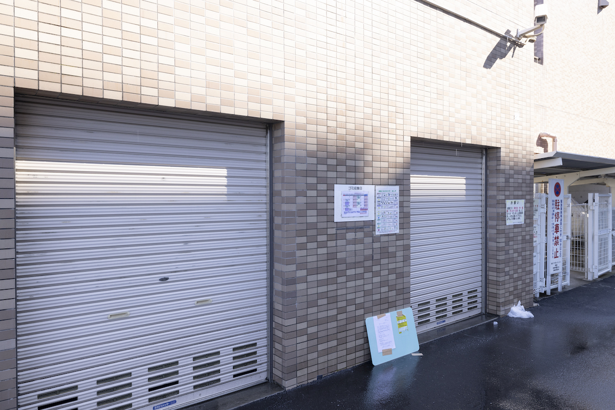 管理棟に併設されたゴミ置き場。使用されていないときには綺麗に掃除しシャッターも閉じられ、景観良く保たれている