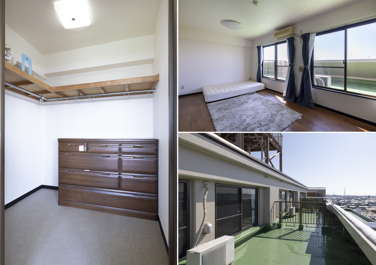 右上:10畳の個室に備えられたウォークインクロゼット(以下WIC)はタンスを入れても余裕のスペース
