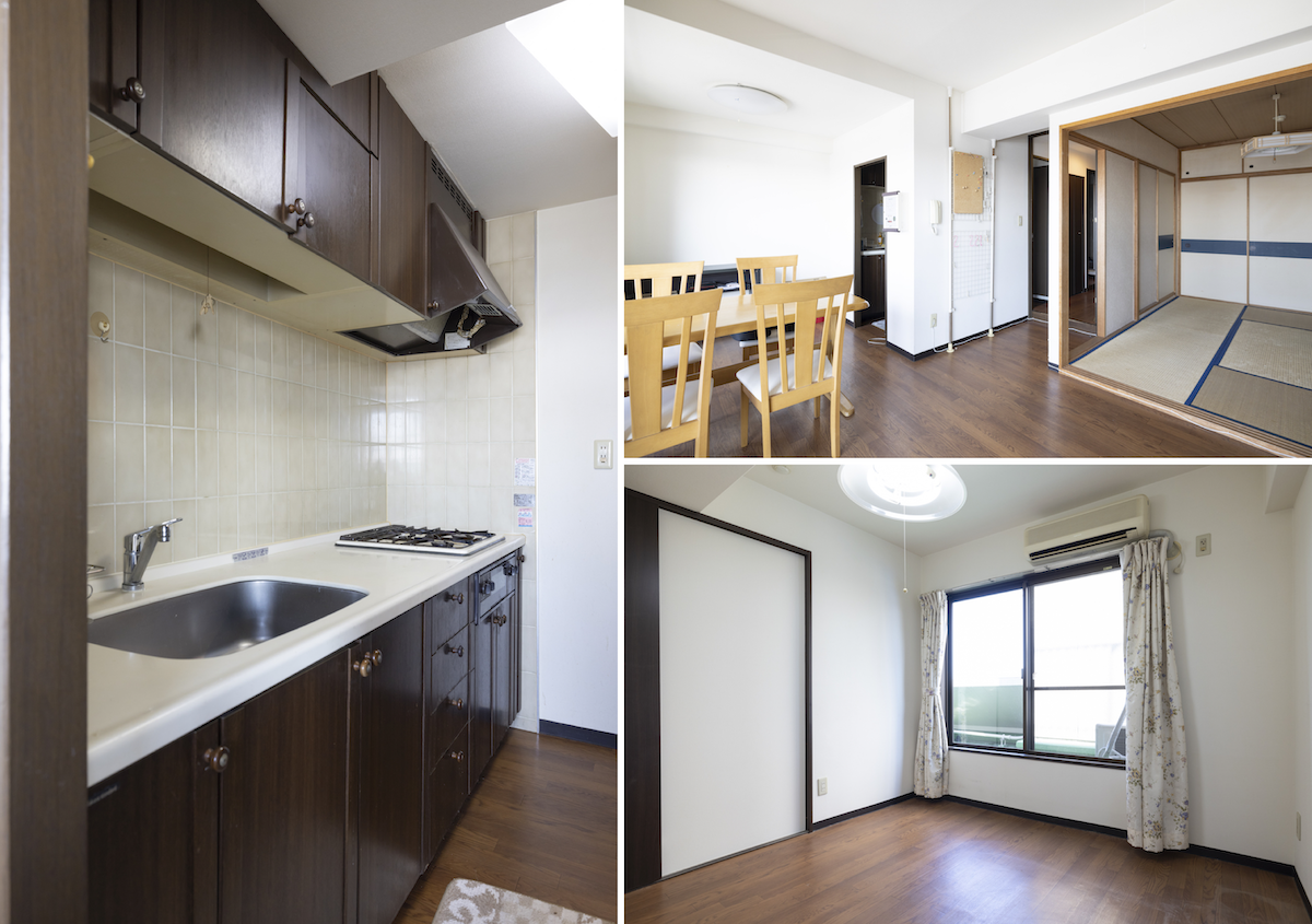 左:キッチンはリビングダイニングと仕切られた独立型。広さは3畳ほどで比較的広め