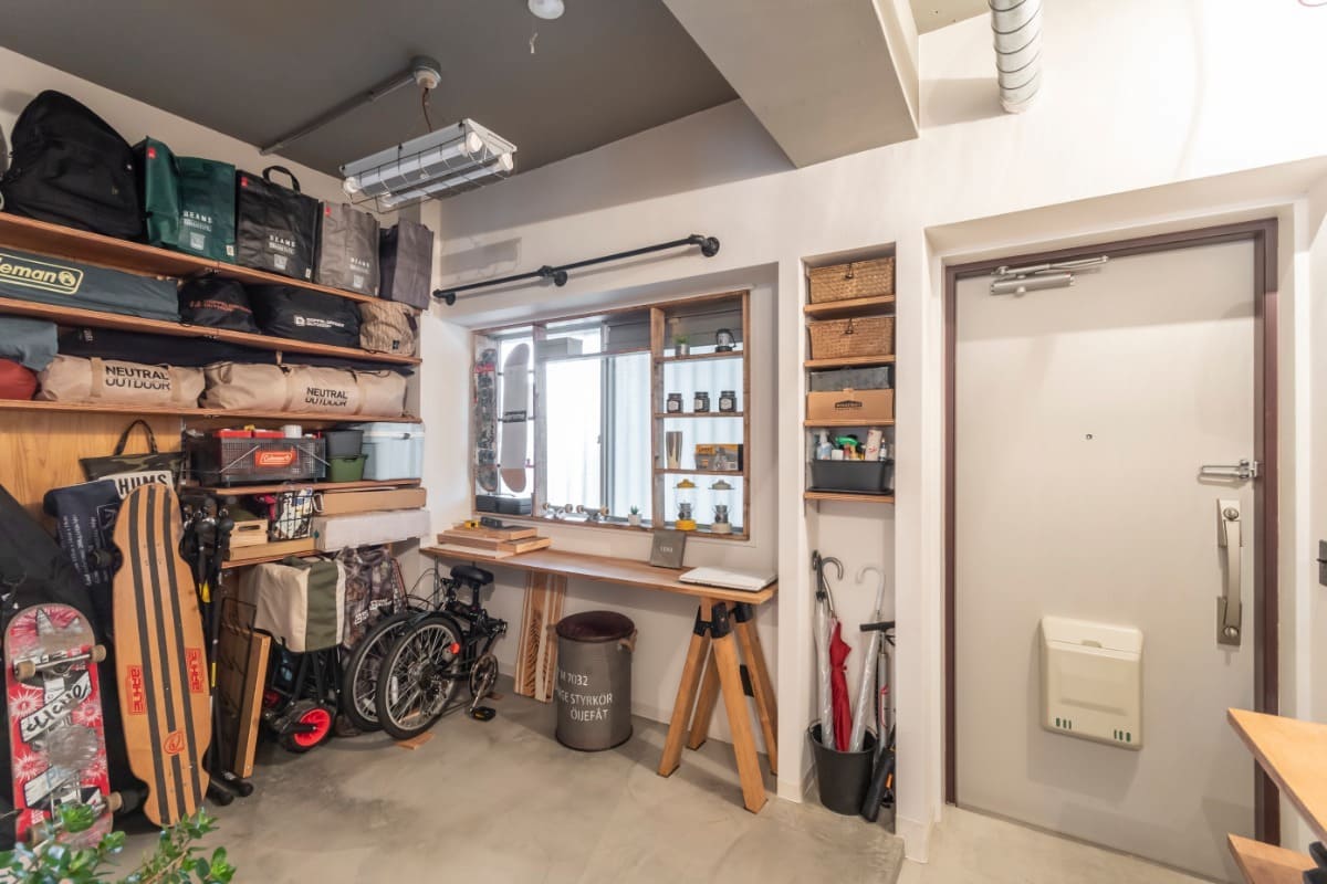 土間玄関を収納場所として活用することで、収納スペースを圧迫する靴やアウトドア用品もすっきり。整理・整頓された玄関周りを実現しやすくなります。