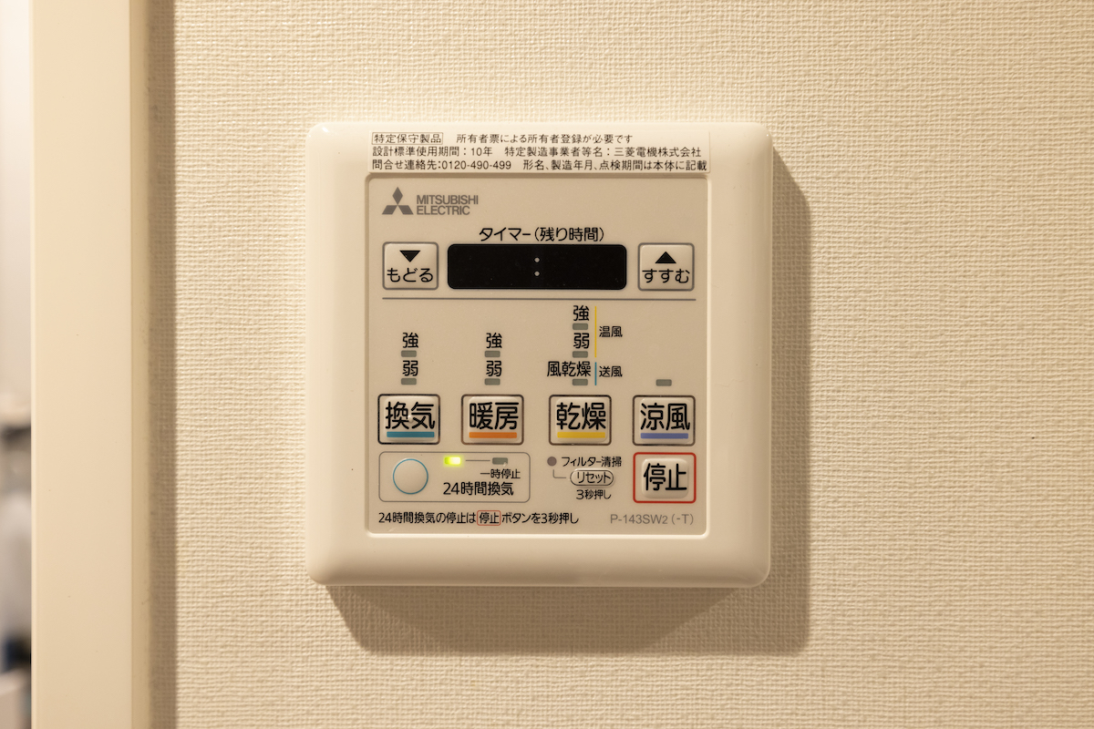 左下:日々の洗濯に便利な浴室乾燥機。冬場に嬉しい暖房付き