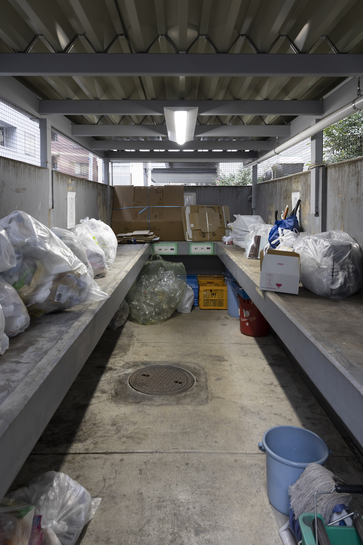 共用部分には防犯カメラが設置され、セキュリティ面も安心。常時ゴミ出し可能なゴミ置き場の扉に暗証番号付きの鍵が設けられており、普段から綺麗に清掃されています。