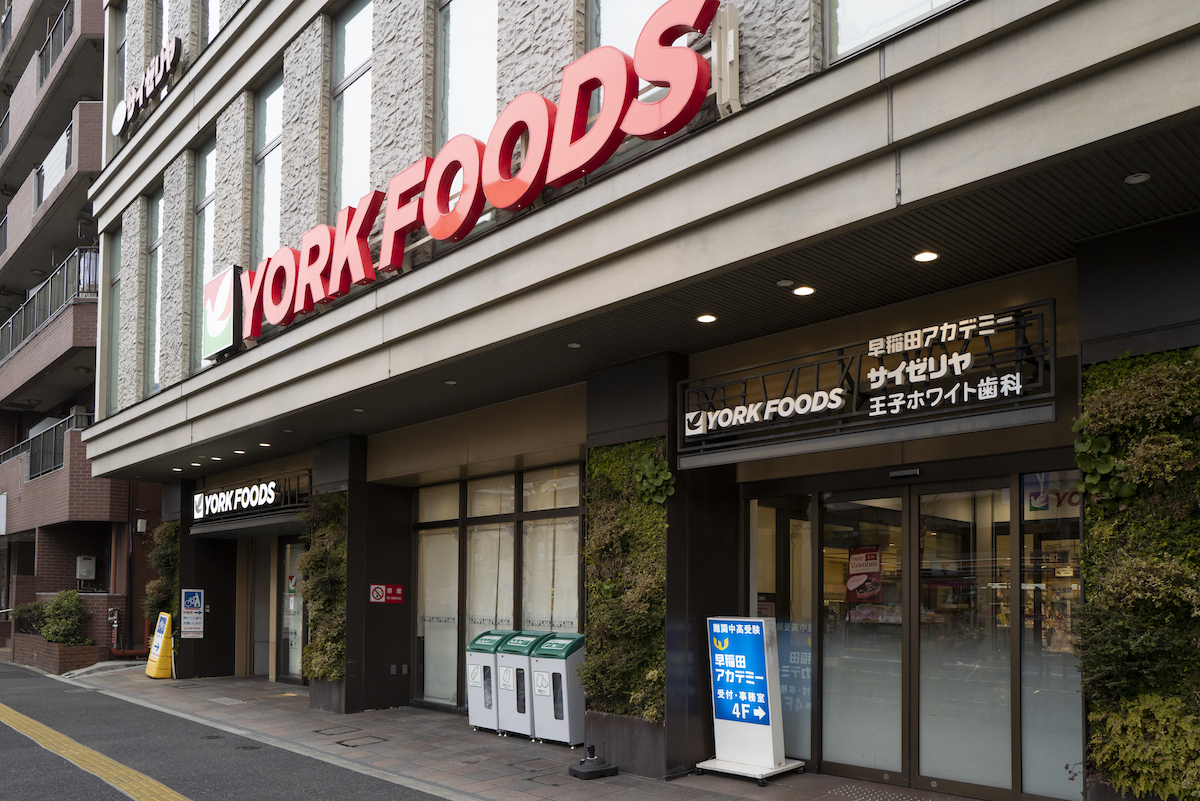 マンションから徒歩5分のところにはヨークフーズ王子店が。徒歩数分圏内にスーパーの選択肢が多いのはとても便利