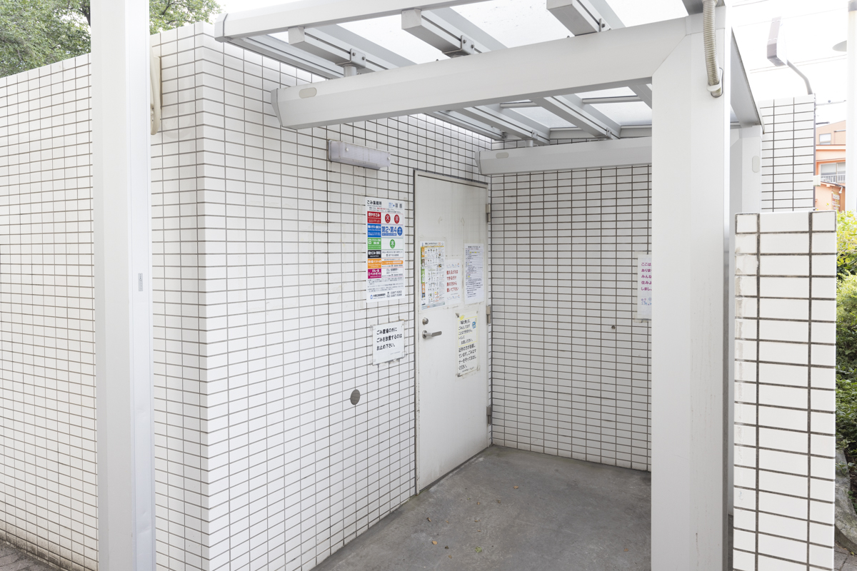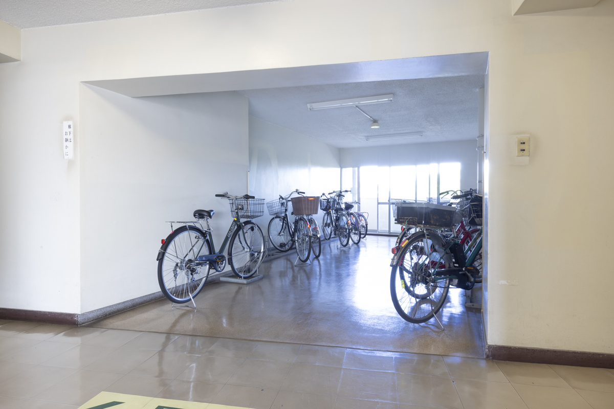 エントランス外の駐輪場にはたくさんの自転車。自転車移動でいろんなところに足が伸ばせるのが伺える