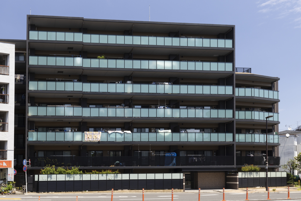 堀切菖蒲園駅より徒歩3分という好立地に建つマンション。築7年と新しく、周りに高い建物があまりないので目を引きます。主要道路と線路に挟まれたところに位置していますが、室内は静かで、防音性には非常に優れているそうです。