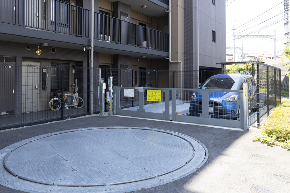 駐車場は機械式。ターンテーブル付きで利用しやすい