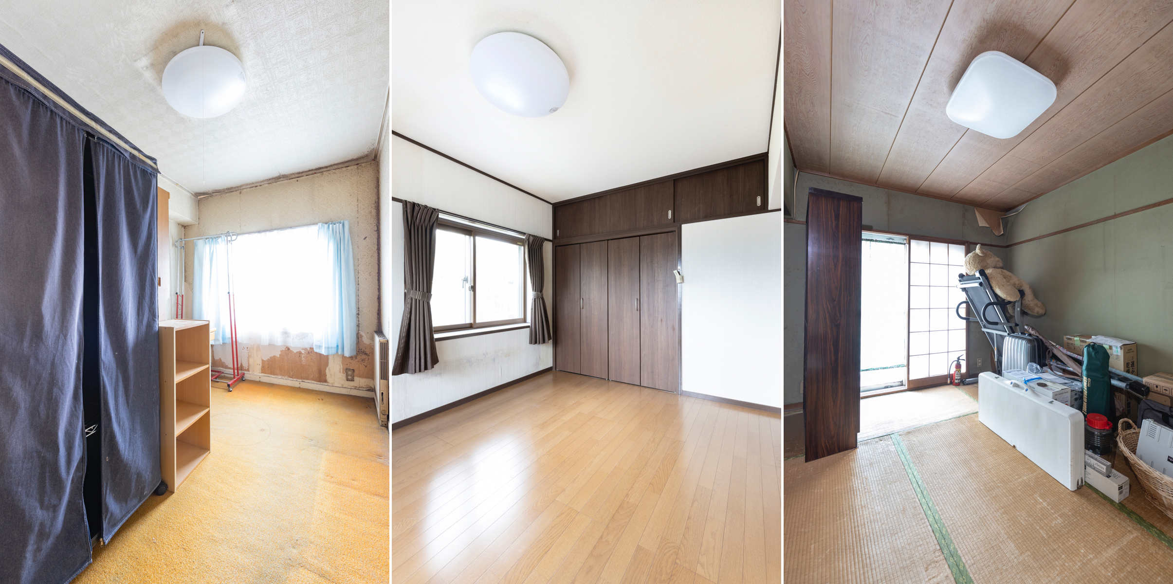 個室はいずれも南向きか東向きに面しているので午前中から明るく、夕方にかけて西日で部屋が暑くなるような心配はほとんどない。一室のみフローリング化されており、ウォークインクロゼットも備わっている