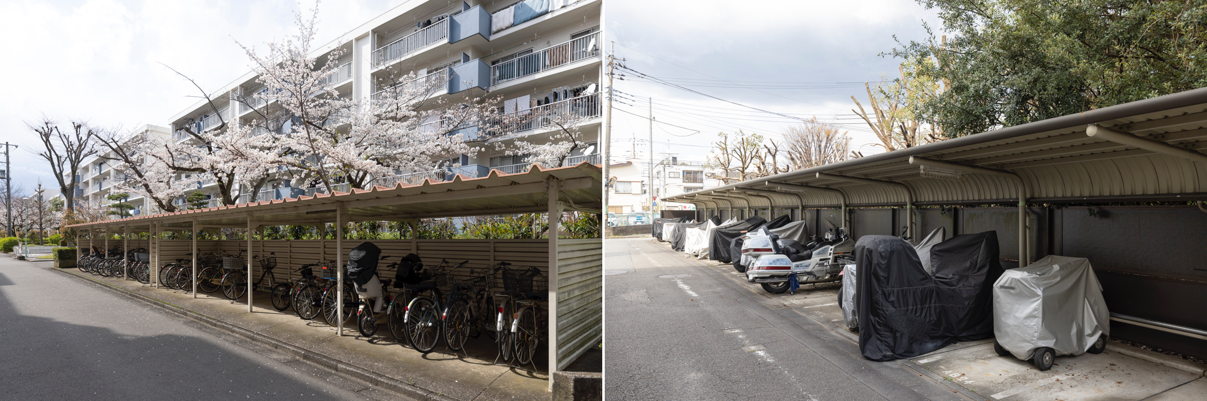 駐輪場は棟ごとに設置。バイク置き場も用意されている